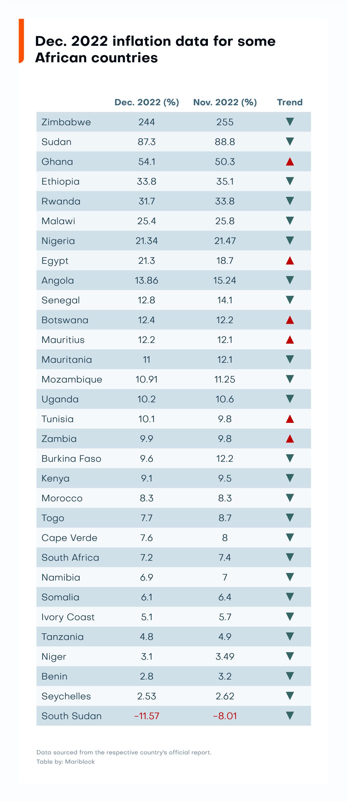 The consumer price situation in Africa appears to be easing after months of consistent surges, the December inflation data of countries in the region shows. Figures from the Mariblock inflation trend table indicate that over 60% of the countries that have reported December inflation data recorded declines in core consumer prices.