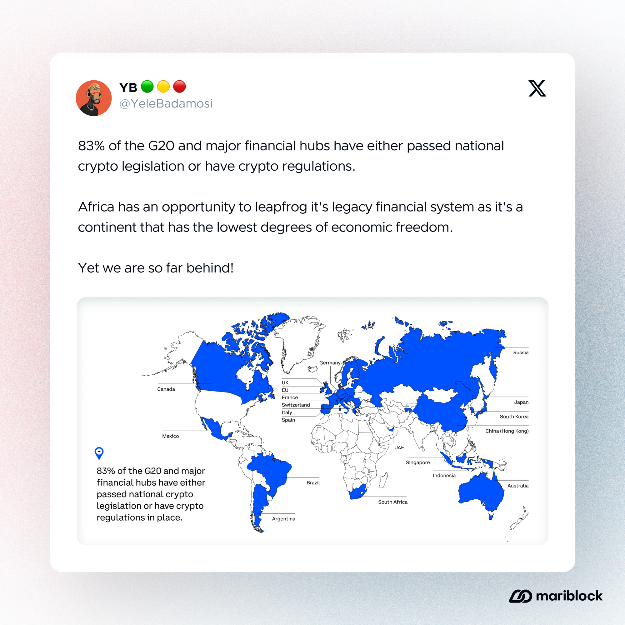 💭 Oluwaseun’s thought cloud: It’s common knowledge that African countries lag behind their global peers regarding crypto legislation.