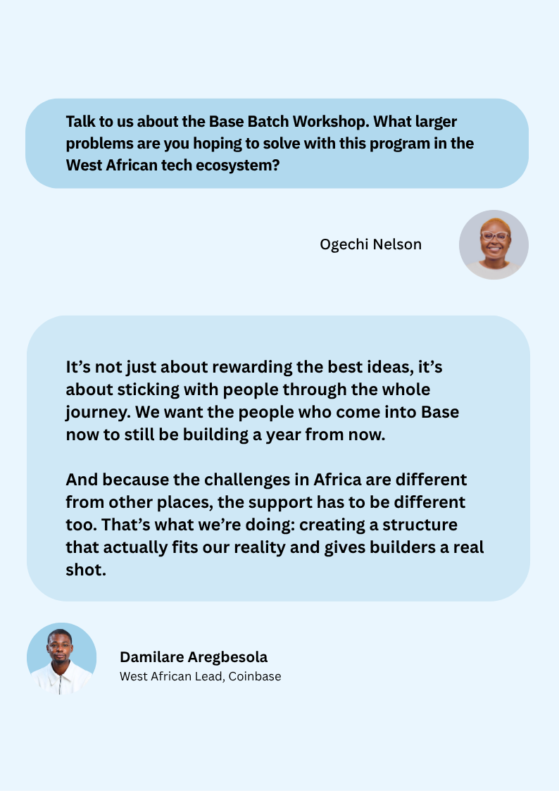 In this edition of Sidebar, our Q&A series featuring the voices shaping Africa’s blockchain future, Damilare Aregbesola, Coinbase's West African Lead, shares Coinbase’s strategy to support African builders in advancing beyond the hackathon stage and his approach to opening doors for both technical and non-technical builders to access global opportunities and funding.