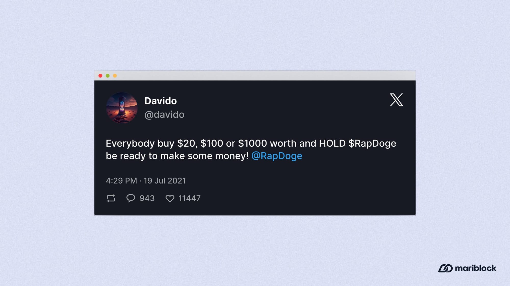 - Also in 2021, he promoted a meme coin dubbed rapdoge, which is now a dead project.