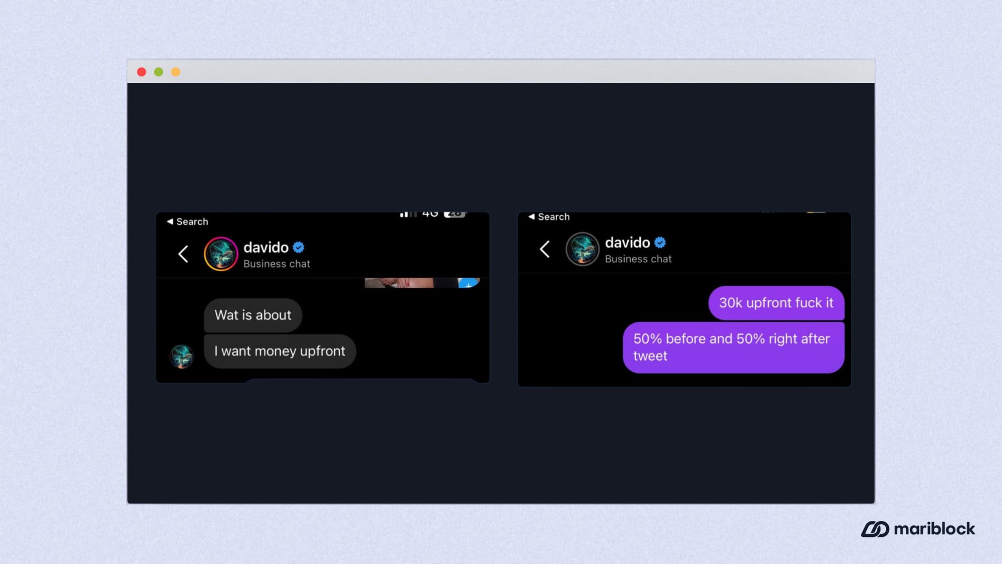 Shortly before his token went live, an X account run by crypto influencer Sahil Arora replied to one of Davido’s posts with a screenshot showing the Afrobeat star saying, “Wat is about; I want money upfront.”