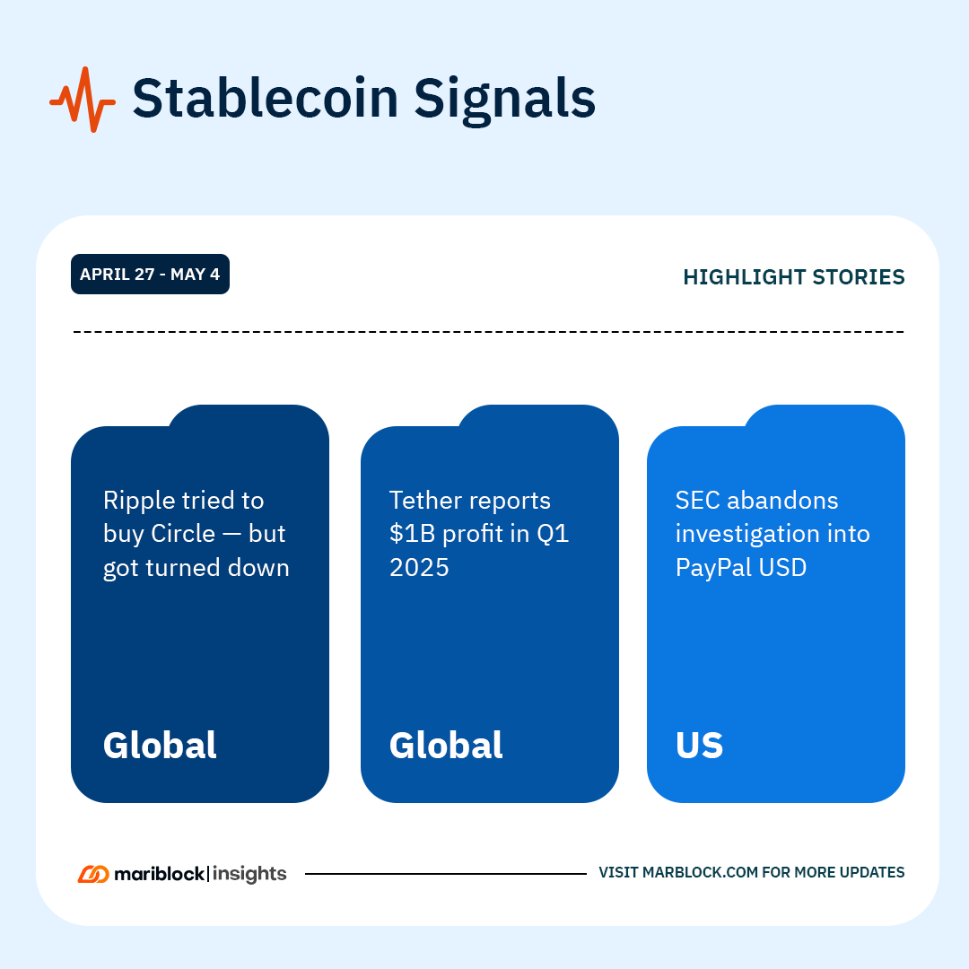 Ripple, issuer of XRP, reportedly made a $4–5 billion bid to acquire Circle, the company behind USDC, but the offer was rejected as too low. While Ripple may still pursue a deal, Circle is prioritizing its recently filed IPO. The development highlights rising M&A and IPO activity in the crypto space. USDC remains a dominant stablecoin with a $61.7 billion market cap, far ahead of Ripple’s new RLUSD, which holds $317 million. (Bloomberg)