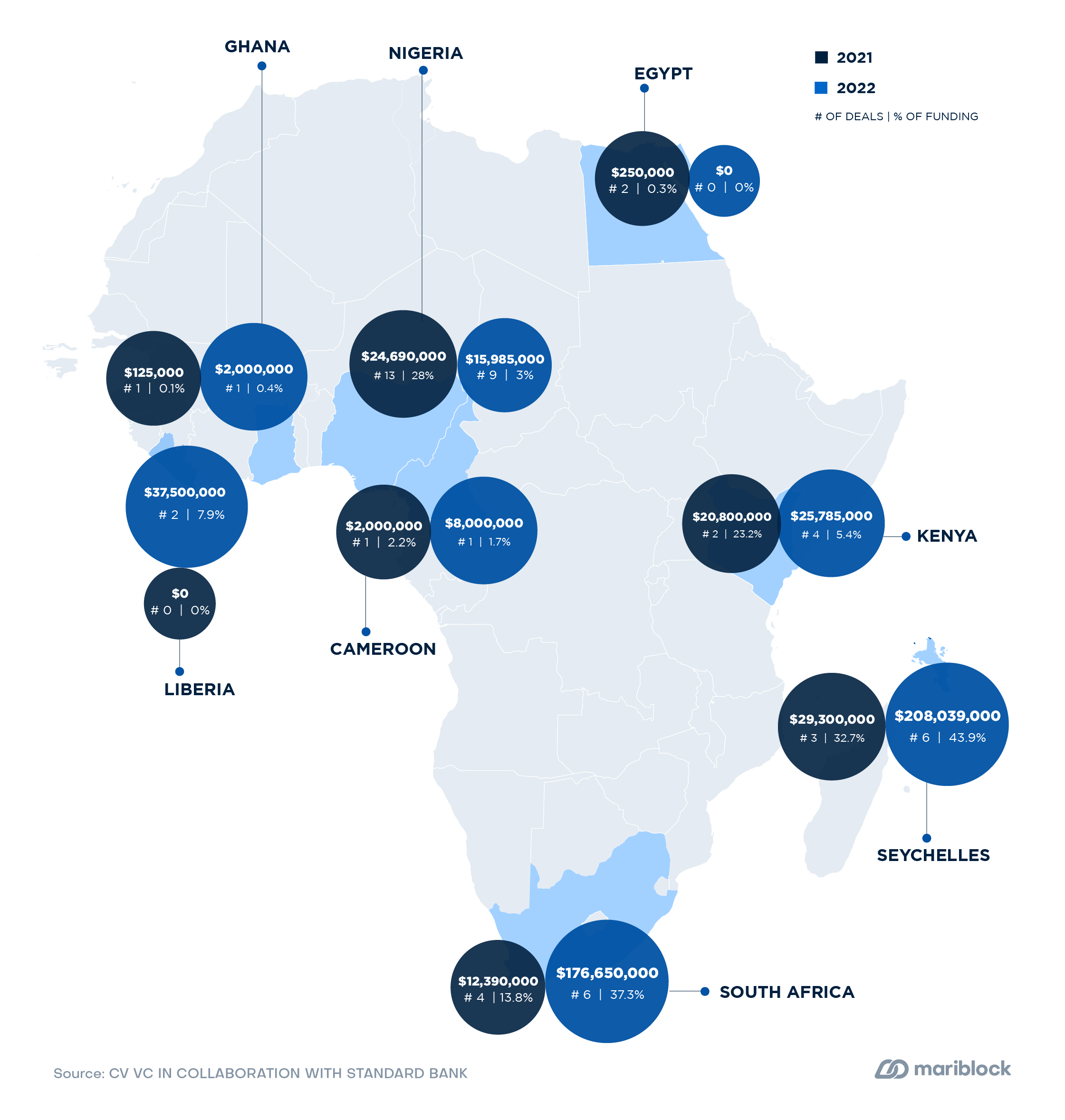 - Seychelles saw the highest deal flow in 2022, with businesses registered in the country raising $208.04 million across six deals. — or 43% of all investments.