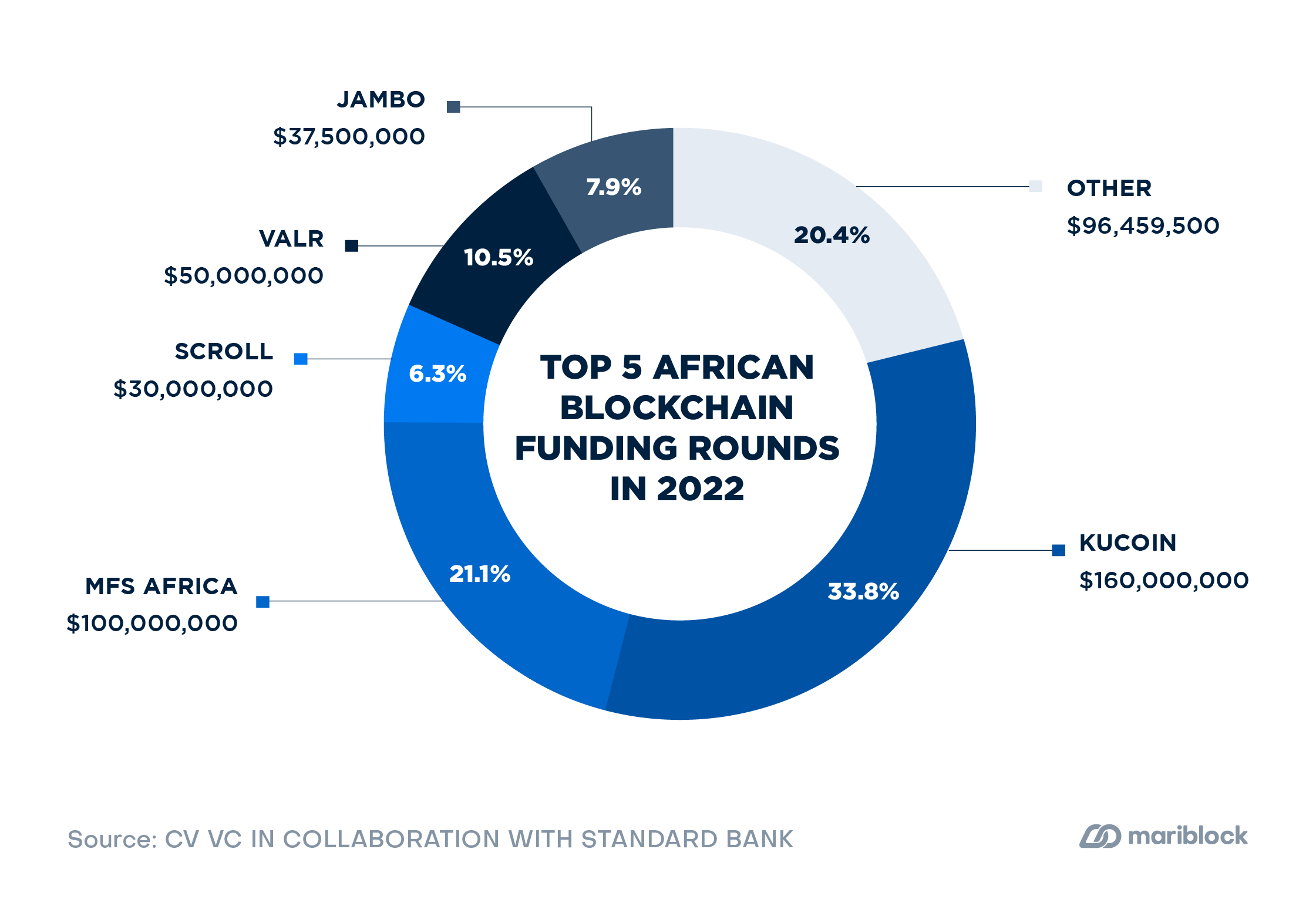 - Kenya-based blockchain companies received $25.79 million (5.4% of all investments) across four deals.