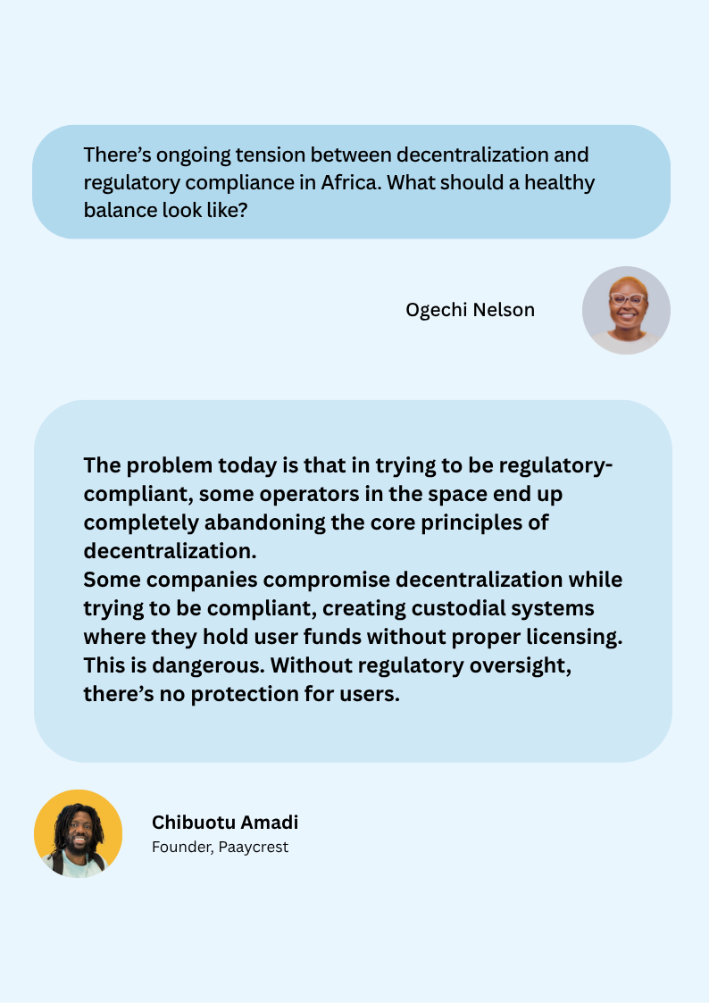 In this edition of Sidebar, our Q&A series with the voices shaping Africa’s blockchain future, Paycrest co-founder Chibuotu Amadi unpacks how compliance pressures are pushing some operators to trade away decentralization, even building custodial systems that hold user funds without proper licenses.